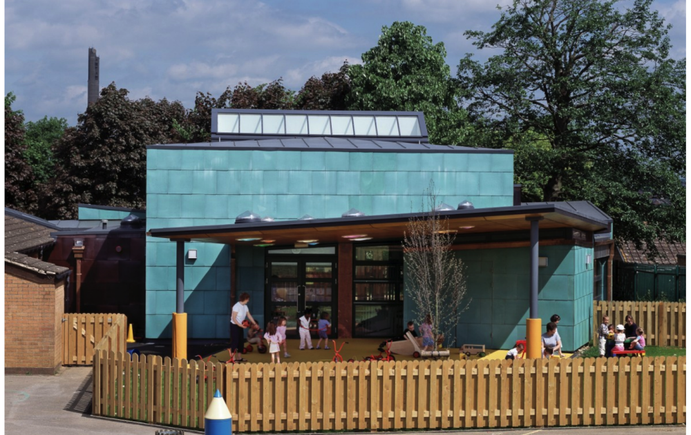 The construction of a new build single storey nursery unit with an innovative design, depicting an arrangement of children's building blocks with a central main play area and ancillary areas providing toilet, office, kitchen and storage. The building is steel framed with copper cladding and a single ply roof. M&E installations include under floor heating. The works were constructed within an occupied Primary School site working around pupils and staff. The project subsequently won a RIBA award and a Civic Trust Award and the client gave Steele & Bray praise for their hard work on such an unusual project which wasn’t straightforward by any means.