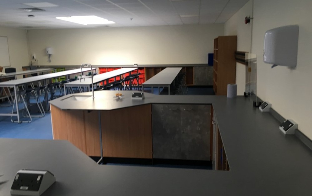 The Science Laboratories were fitted out with bespoke furniture including gas lines and fume cupboards.